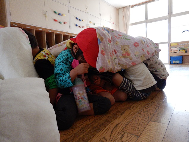 放送の声と保育者の話を聞いて、すぐに安全な場所へ集まることができました。