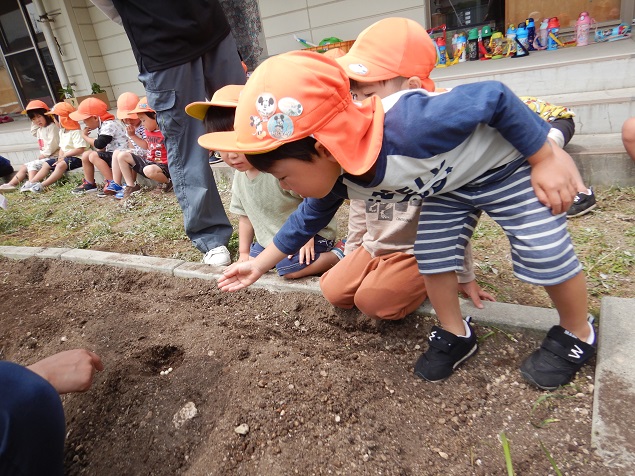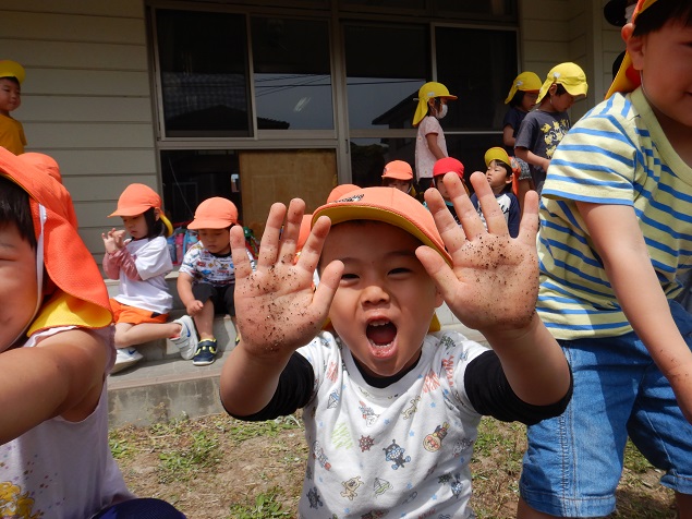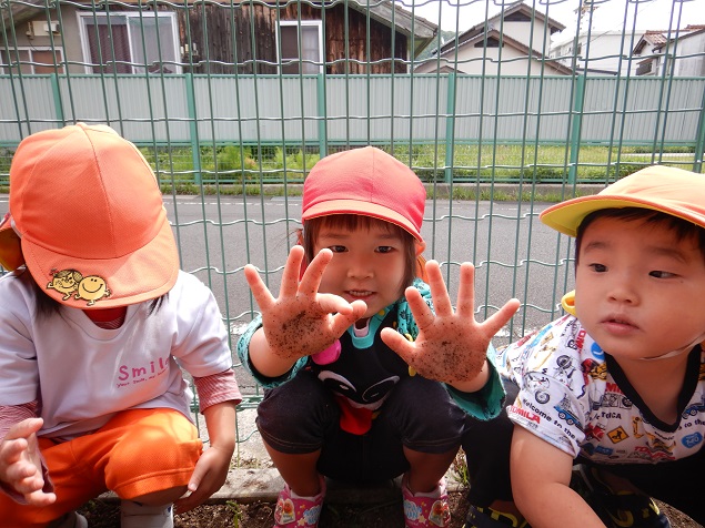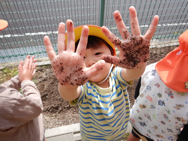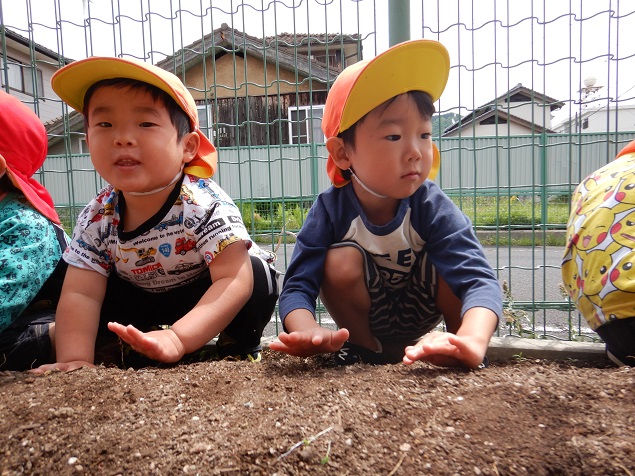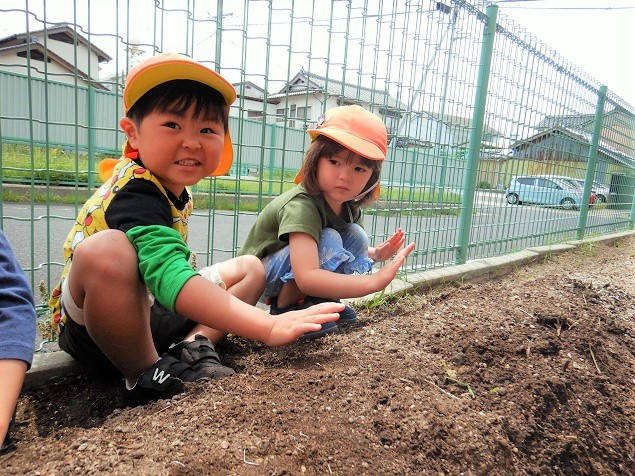 はじめは土を触るのに抵抗のあるお友だちもいましたが、触っていくうちに「ふわふわしてて気持ちいい~~♪」と嬉しそうに畝作りを楽しんでいましたよ♬