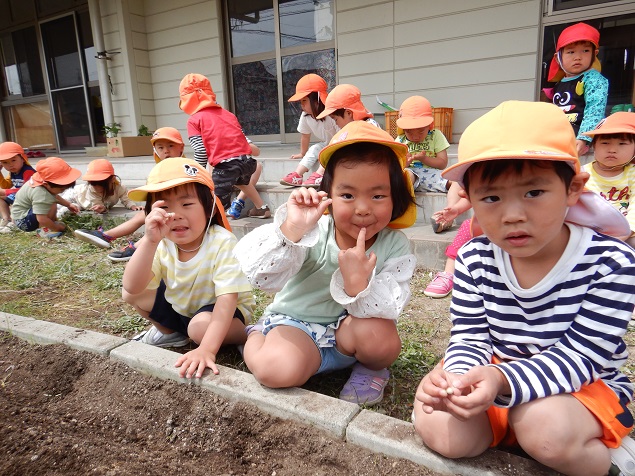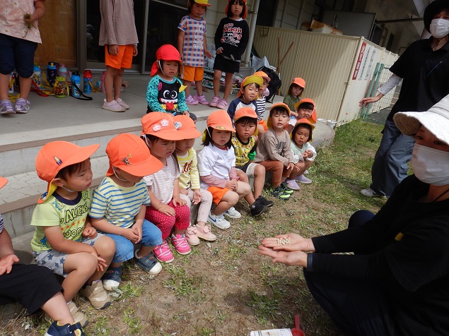 お次は枝豆の種まき。「お豆は緑色なのにーーー!」と白色の種にびっくりする子どもたちでしたよ■✨