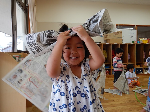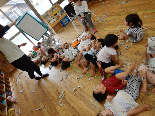 「わぁーーーーーい!!新聞紙シャワー――!!」