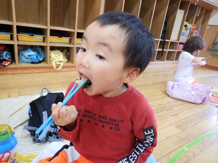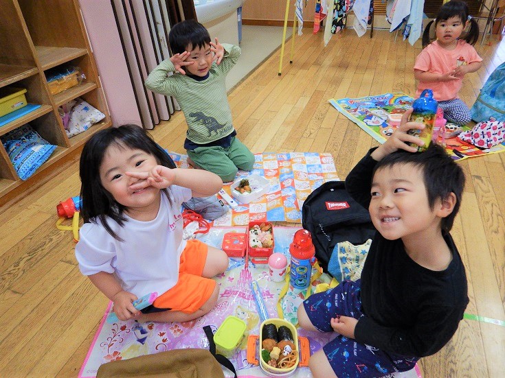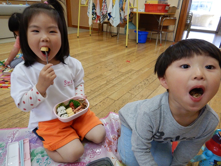 この時間まで、保育者と目が合う度に「お弁当まだー?」と待ちきれない様子のばす組さんでした(笑)