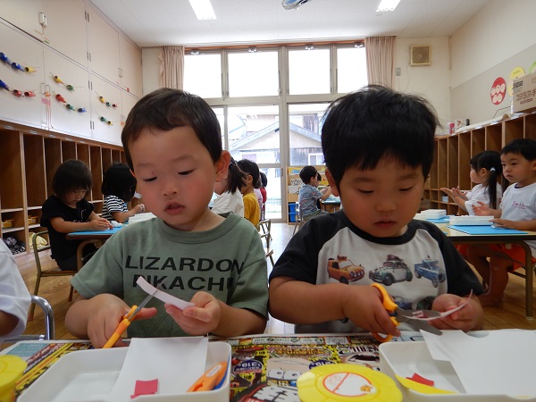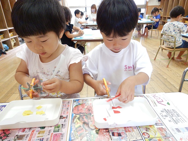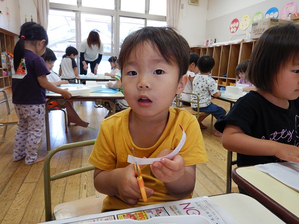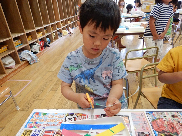 ハサミを使った製作をしました。