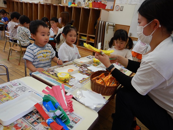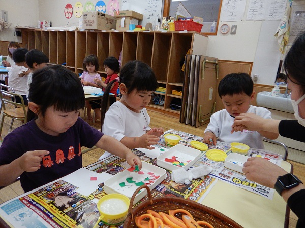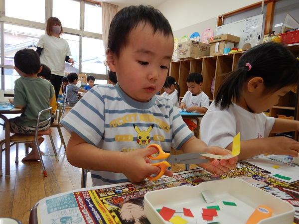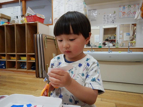 「これくらい?」と、保育者に聞きながら丁寧に製作をしていましたよ!!