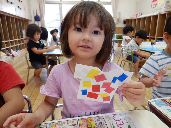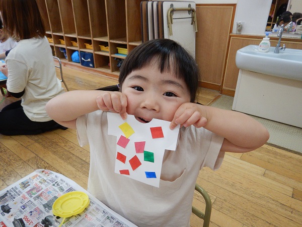 先日、手で色塗りをした画用紙を使いましたよ♪
