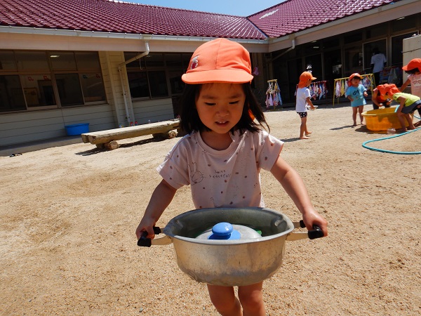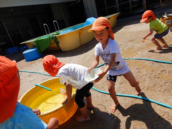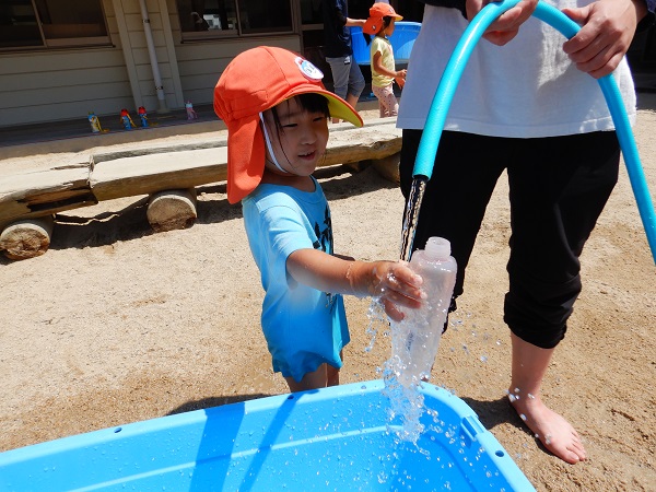 水を汲むと、保育者やお友だちを狙いにいくばす組さん■