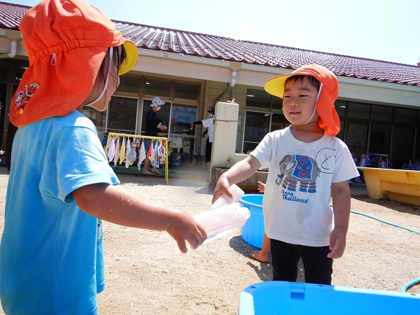 お友だちの気持ちを考え、「かけてもいい?」と、確認をしてから水をかけるお友だちもいましたよ✨