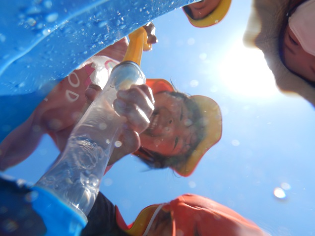 お水で少し冷えた時には、砂の上で温まります!