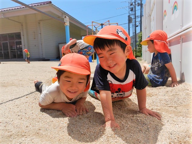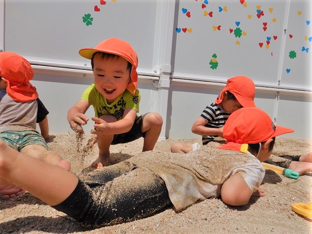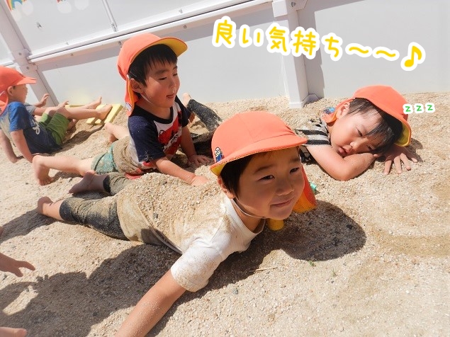 温かい砂の感触が気持ち良くて、寝転んじゃうお友だちも♪
