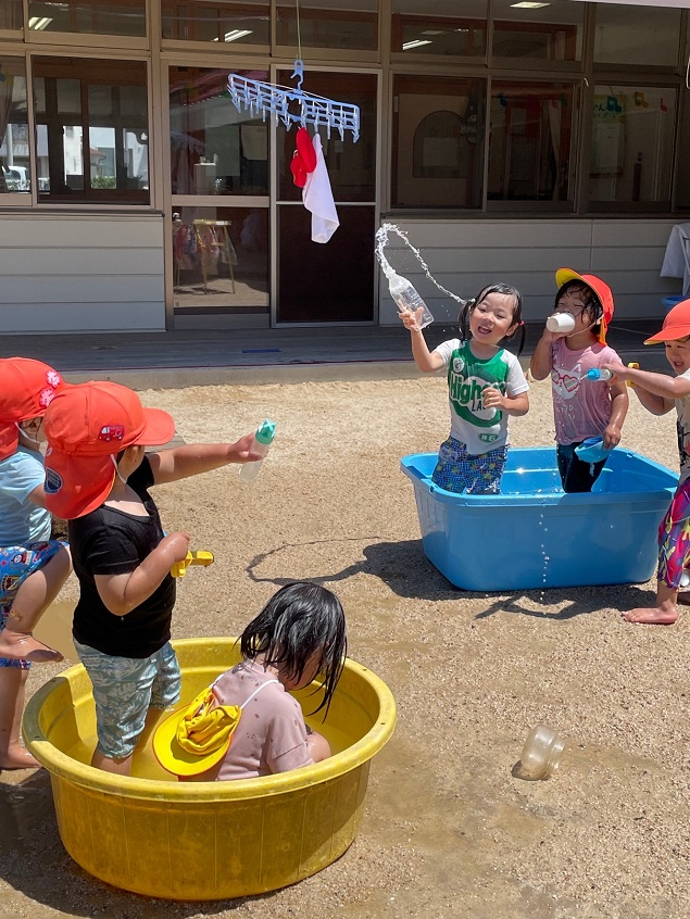 こちらはみんなで水かけ合戦!