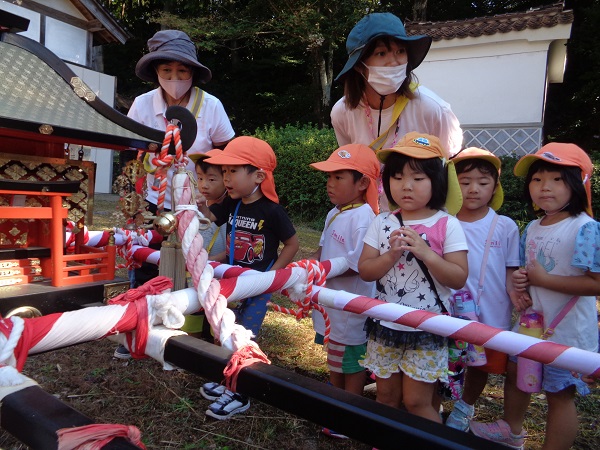 大田祭りがあり、喜多の宮まで大天狗さんに会いに行きました。「早く天狗さんに会いたいなぁ」「怖いけど泣かんよ♪」と行く前はとても張り切っていたばす組さん☺