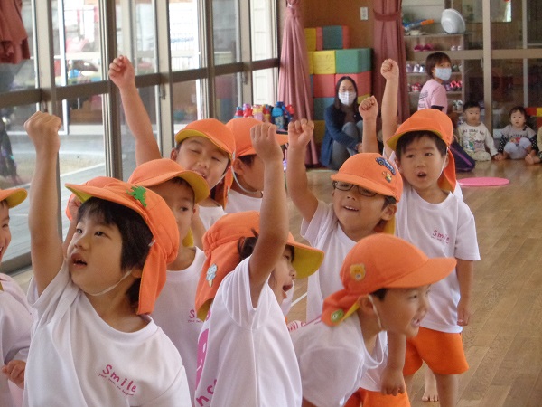 みんなに見守られながら、ばす組さんらしい元気いっぱい笑顔溢れる運動会ごっこになりました!