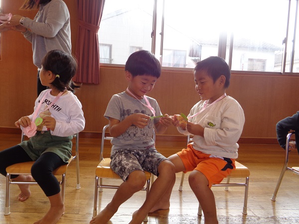 園長先生にプレゼントのペンダントをもらい、とっても嬉しそう♡