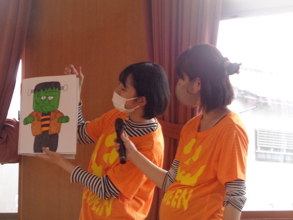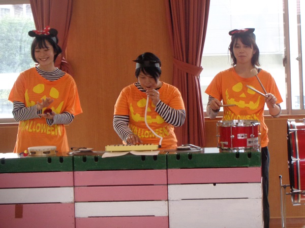 お楽しみの時間は、保育者によるハロウィンにちなんだ出し物と、みんながよく知っている「ミッキーマウスマーチ♪」の合奏✨