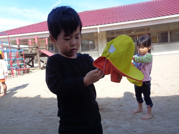 鬼になったお友だちは黄色い帽子を被ってみんなを追いかけます!