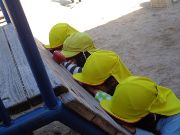 鬼にタッチされたお友だちも、帽子を黄色に変えて、どんどん鬼が増えていきますよ!!