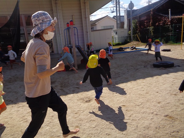 誕生会の後は、ばす組みんなで鬼ごっこをしました!!