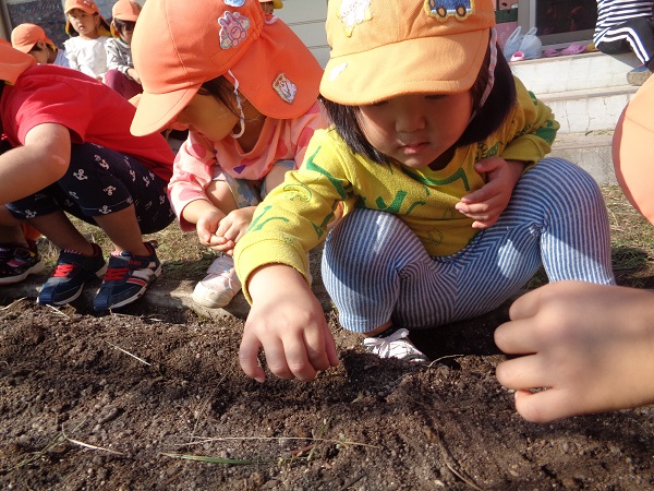 植える前に「種の色は何色かなぁ」とみんなで見てみることに■