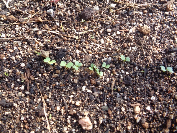 お散歩に行く前に、先日種を蒔いたカブの様子を見に行きましたよ■
