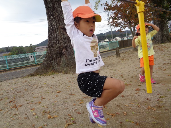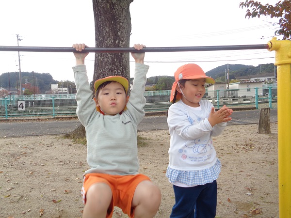 鉄棒では、お友だちとぶら下がり競争をしたり足抜き周りやおさるをしたり、様々な技を披露してくれましたよ✨