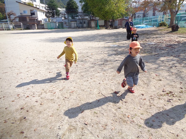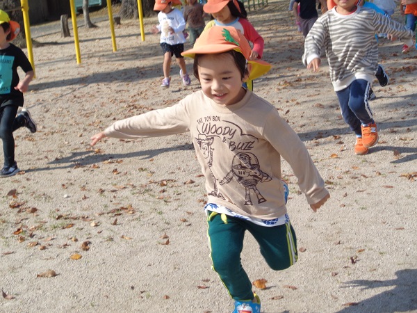 保育者が「ちょっと休憩しよ~よ」と誘うと「ダメ~まだまだ走るよ~」と本当に元気いっぱいです♪