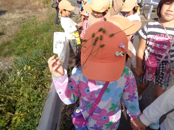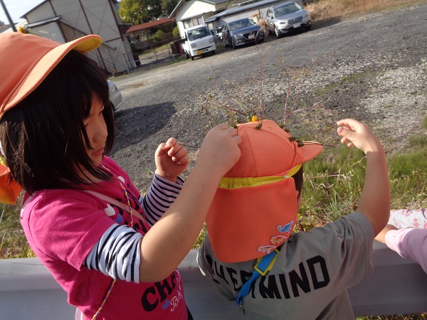 ひっつき虫(センダン草)を帽子にた~くさんつけて、出発!!