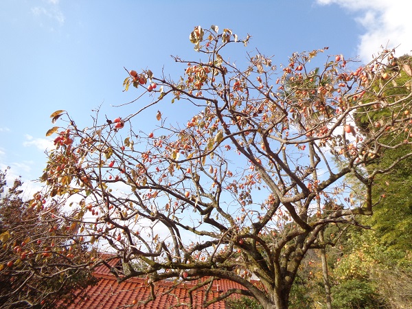 工事のためしばらく通れなかった円応寺の近くの坂道を通ると、柿が鈴なりに実っていました☺