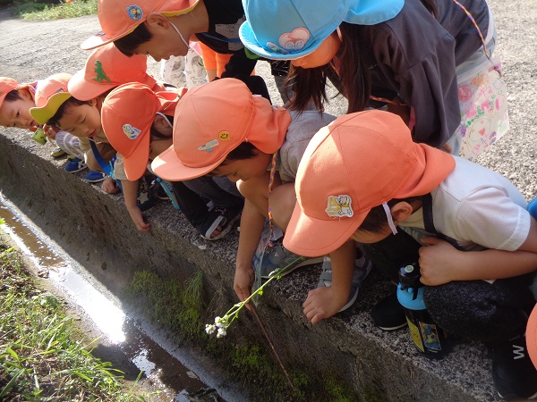 田んぼのわき道を散策していると...