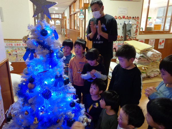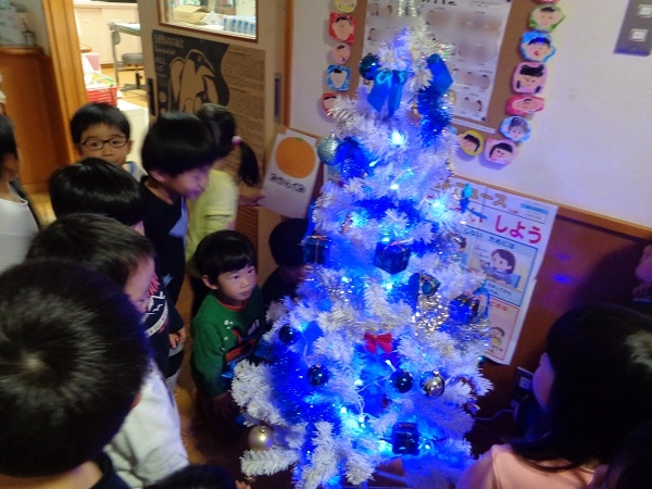 青く綺麗に光るクリスマスツリーにみんな大喜びでしたよ♡