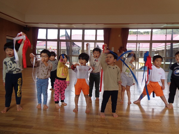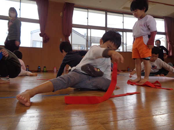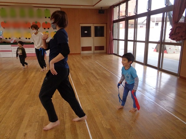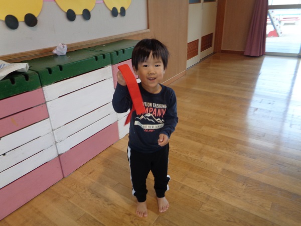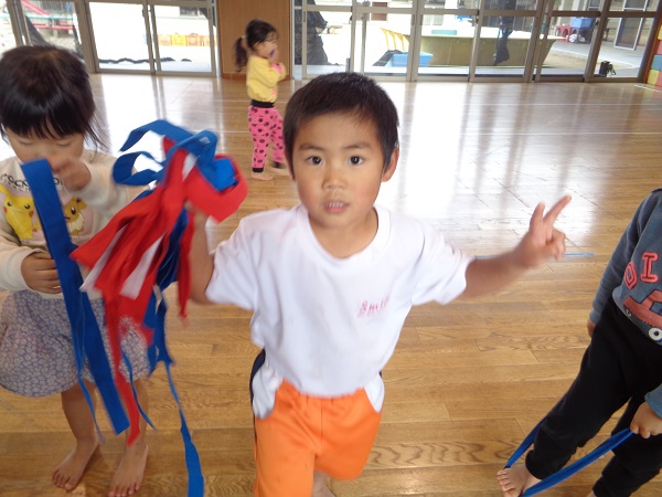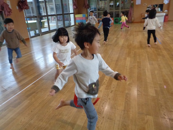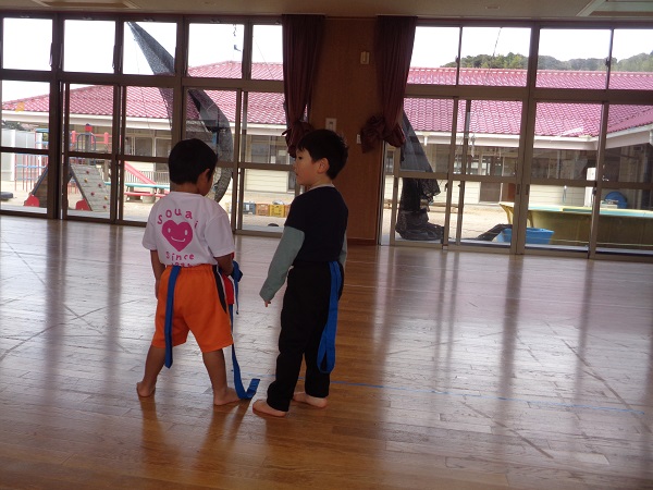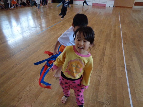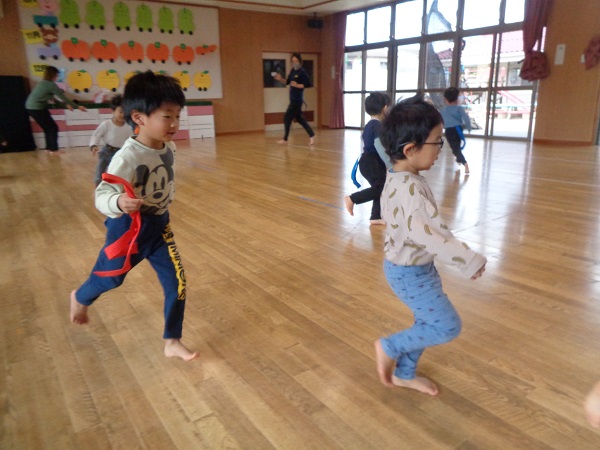 しっぽを取られないようにしながら、お友だちのしっぽを取ることはちょっぴり難しいかなぁと思いましたが、みんな忍者のように逃げて取ってと上手にしていましたよ♡
