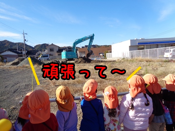 みんなの大好きなショベルカーが動いていたので応援しました♡