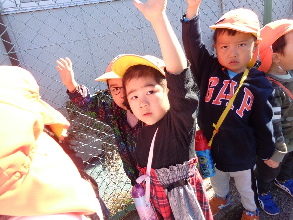 『戸外でしっかり身体を動かして遊ぼう』をねらいにお散歩に出発です!