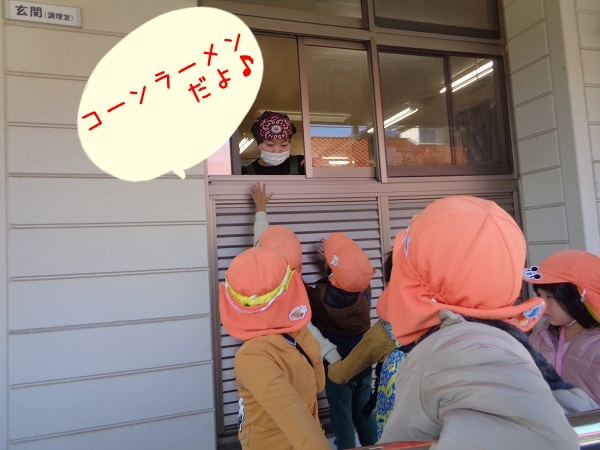 給食先生が窓から顔を出してくれたので「今日の給食は何ですか?」と聞いていましたよ✨