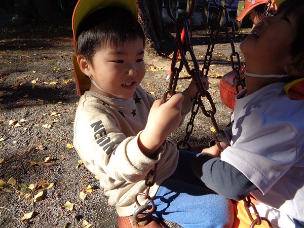 ブランコの2人乗り♪順番を守って仲良く乗っていましたよ☆