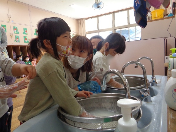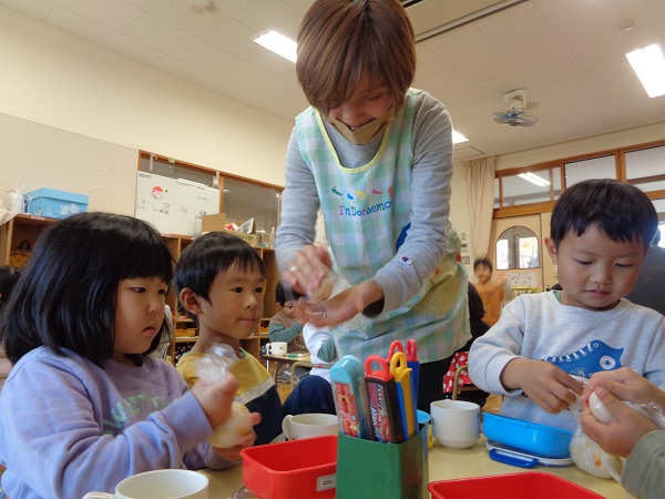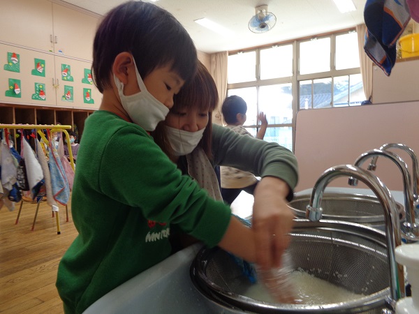お水が透明になったことをみんなで確認すると「やったー!綺麗になった~」と喜んでいました♡