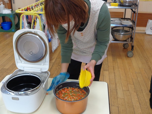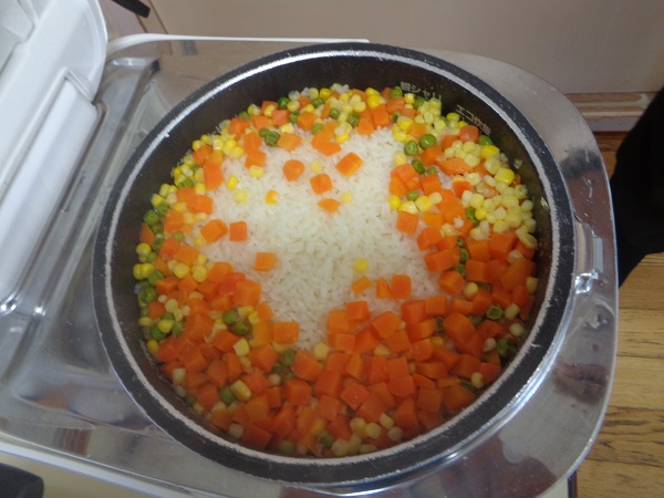 お水を入れて具と調味料を入れピラフを作りましたよ■