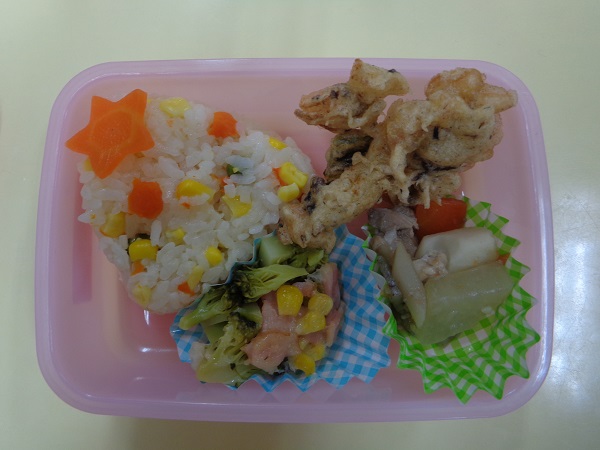 星型の人参を飾り付けたら、クリスマスツリー弁当の完成です♡