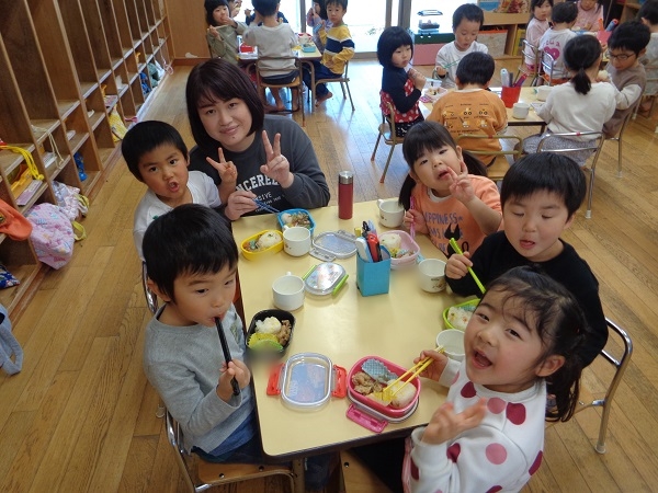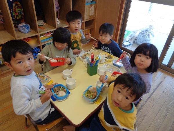 園庭で遊び、そろそろピラフが炊けたかなと戻ってみると...♡