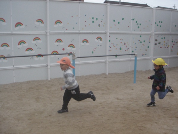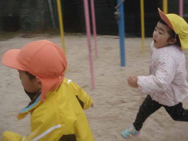 今日は雨予報だと思っていましたが、朝はお日さまが出ていたので、みんなで元気に鬼ごっこを楽しみました■