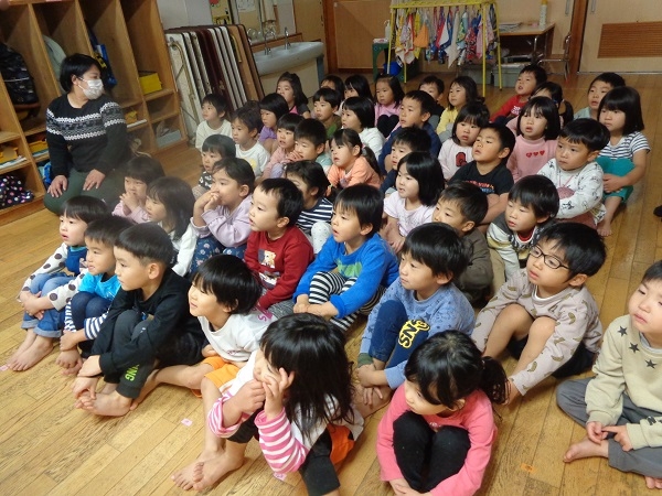 「大きなかぶ」と「かさこじぞう」の劇を見ましたが、みんな真剣な様子で見入っていましたよ☺