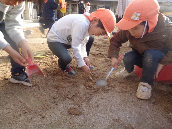 いまばす組でブームなのが土を掘り、土の塊をたくさん集める事♡