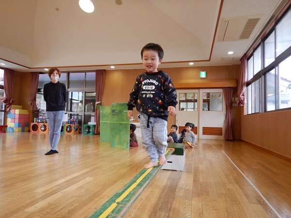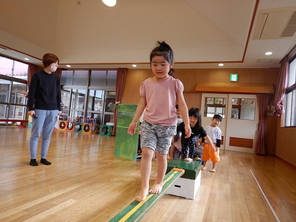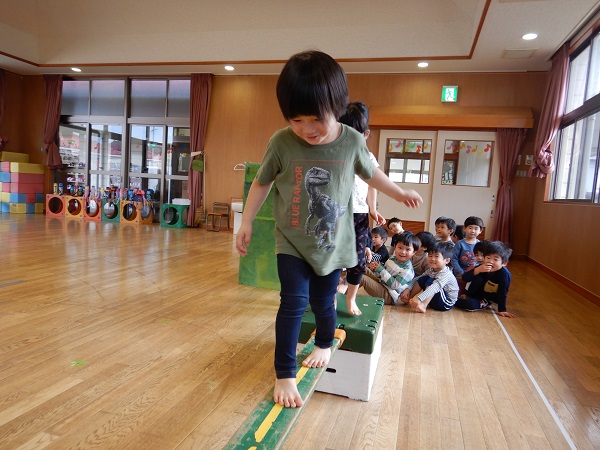 上手にバランスを取りながら、スイスイと渡ることができるお友だちがたくさんいますよ!