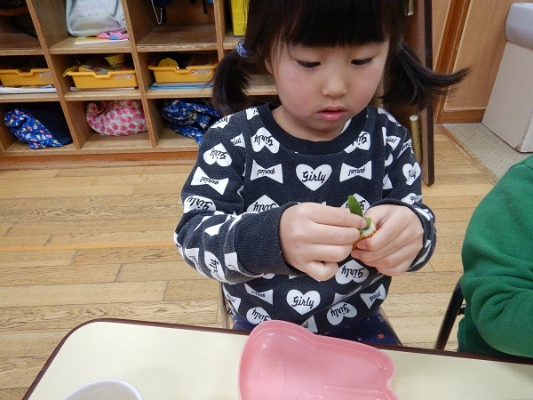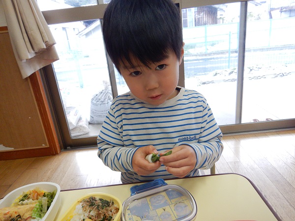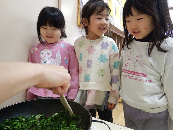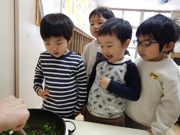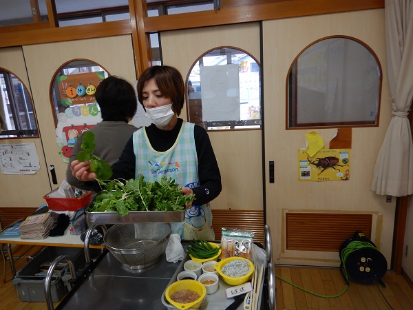 畑で育てているカブの間引き菜で、保育士がふりかけを作りましたよ♪