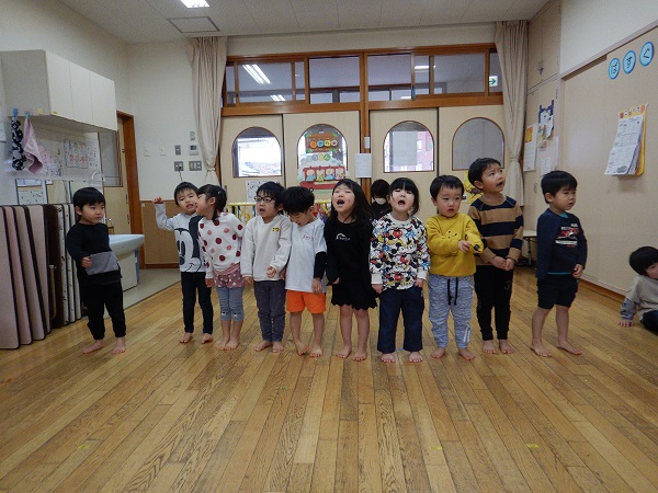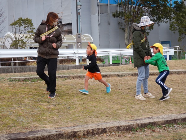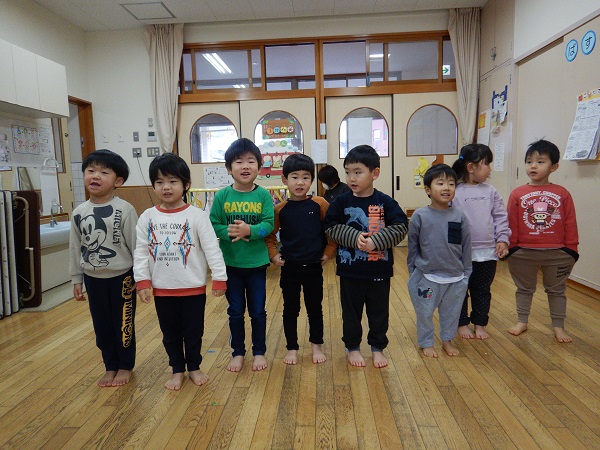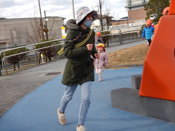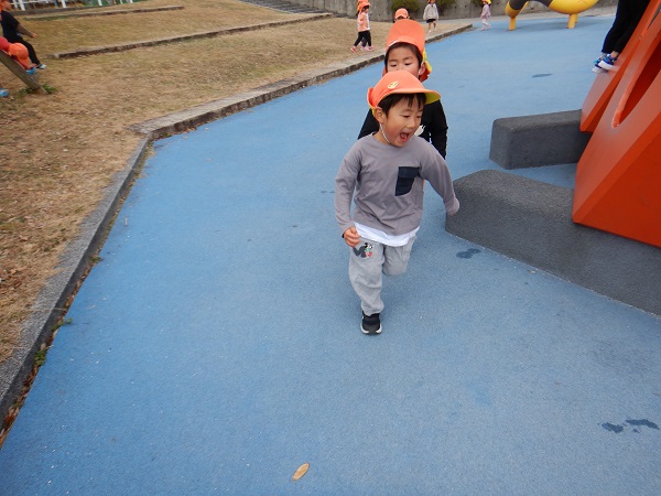 普通の鬼ごっこから始まり、鬼が増えていく増え鬼、氷鬼ごっこ、がらがらどん鬼ごっこ(子ども達が作った鬼ごっこです)など、色々な種類の鬼ごっこをきちんとルールを理解しながら楽しむことが出来ていましたよ。