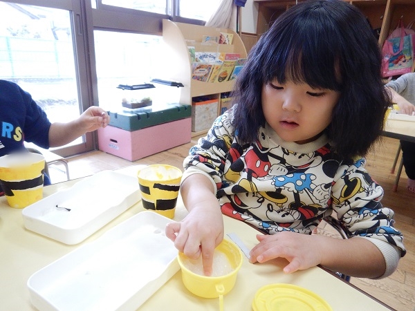 「恐竜鬼ごっことか楽しそうじゃない?」「カブの鬼ごっこしてみたい」「ゾンビ鬼ごっことか怖そうだよ~」と、色々な鬼っごっこを考えるのに盛り上がっていました。今度ばす組さんでルールを考え、オリジナルの鬼ごっこに挑戦してみたいと思います☺
