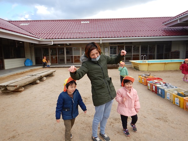 製作の後は、園庭で鬼ごっこをして遊びました。