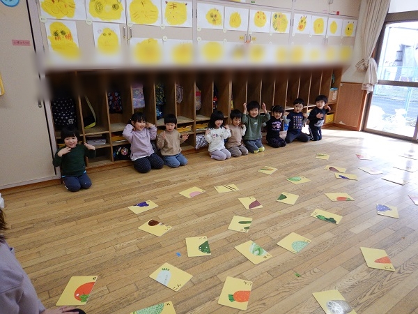 保育者の声をよく聞き、カードをよく見て、素早く取りに行くことができ、大盛り上がりでした。
