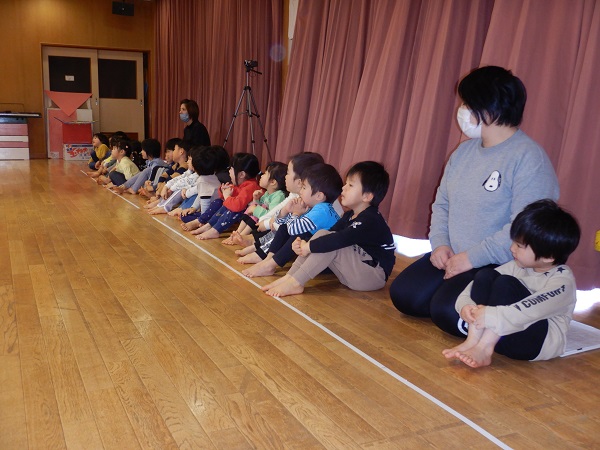 「大きな声でセリフを言っていたのがかっこよかったです」「踊る所がかっこよかったです」「三角座りで待つのが上手だったよ」「ヒーローみたいに素敵な発表でした」等々、ばす組さんの素敵だったところをたくさん発見してくれたひこうき組さん♪