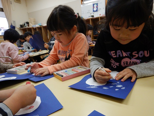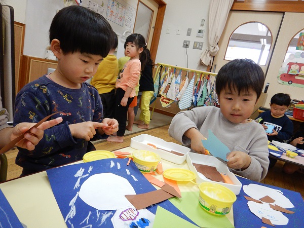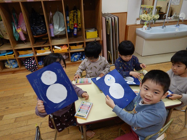 できた作品は保育室に飾ります!週末のお楽しみ会でお家の人に見てもらおうね☺