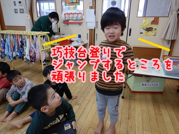 他にも「ゼンカイジャーを踊るのを頑張りました」「一本橋を渡るのを頑張りました」「歌を大きな声で歌うのを頑張りました」「お母さんお父さんに見てもらうのが嬉しかったです」など、それぞれ頑張ったことを思い出して上手に発表してくれましたよ♪
