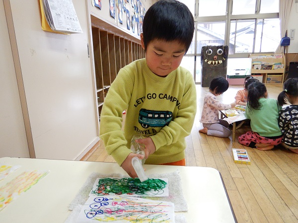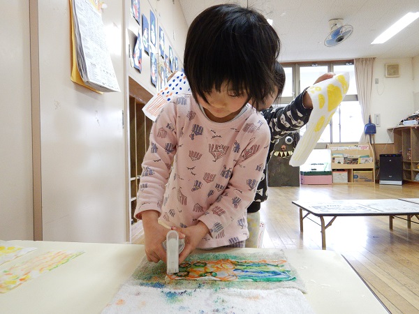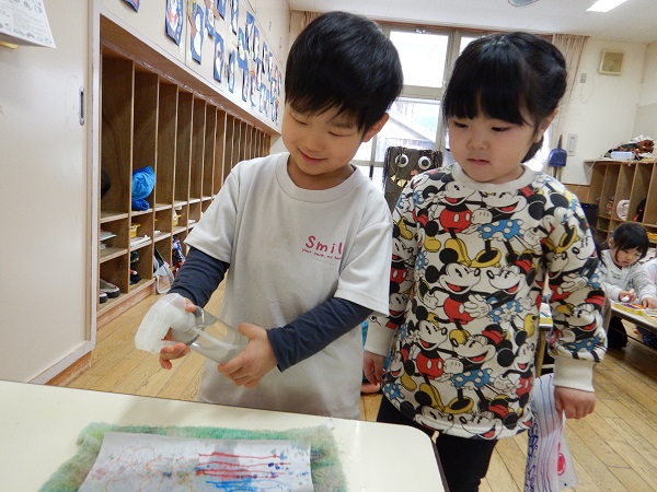 だんだん色がにじんでいく様子を見て「わぁ~すごい」とびっくりしていました☺